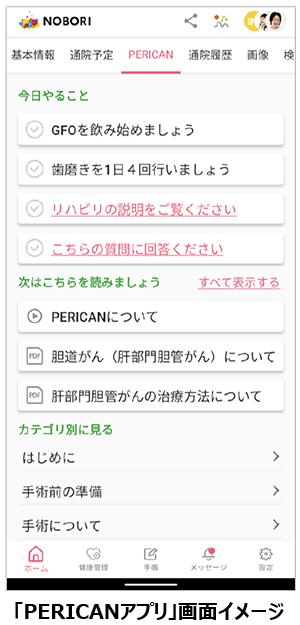 ●「PERICANアプリ」では、従来冊子で提供していたERASの説明内容を動画化し、理学療法士や管理栄養士による専門的な解説をアプリ上でいつでも視聴できるようになります。患者さんはリハビリテーションの正しい方法や術前・術後の栄養管理について、専門スタッフのわかりやすい動画指導を通じて、より深く理解し実践することができます。